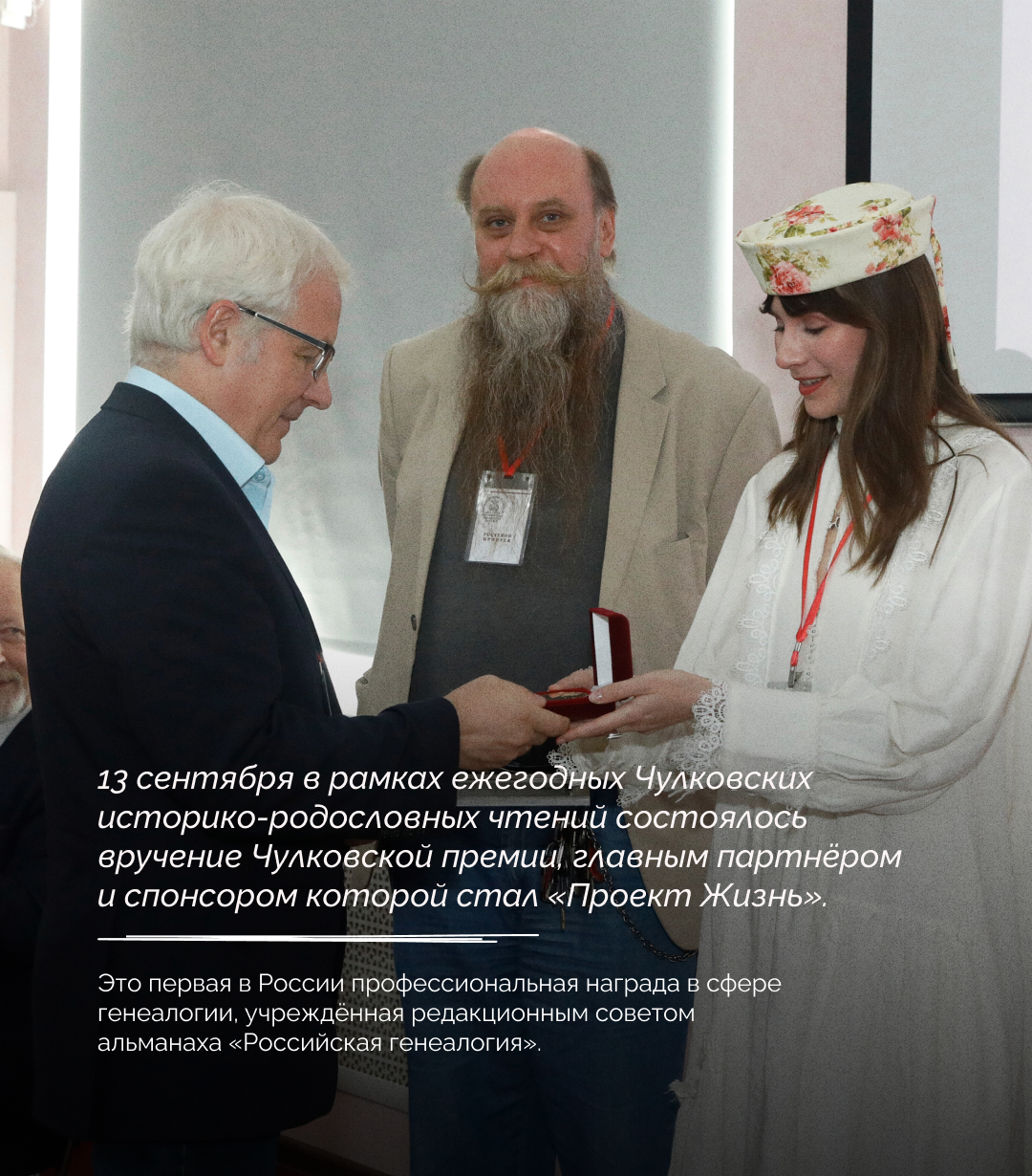 13 сентября в рамках ежегодных Чулковских историко-родословных чтений состоялось вручение Чулковской премии, главным партнёром и спонсором которой стал «Проект Жизнь». Поддержка и развитие генеалогии как науки — неотъемлемая часть миссии «Проекта Жизнь» как лидера и визионера в области семейного наследия. Это первая в России профессиональная награда в сфере генеалогии, учреждённая редакционным советом альманаха «Российская генеалогия».