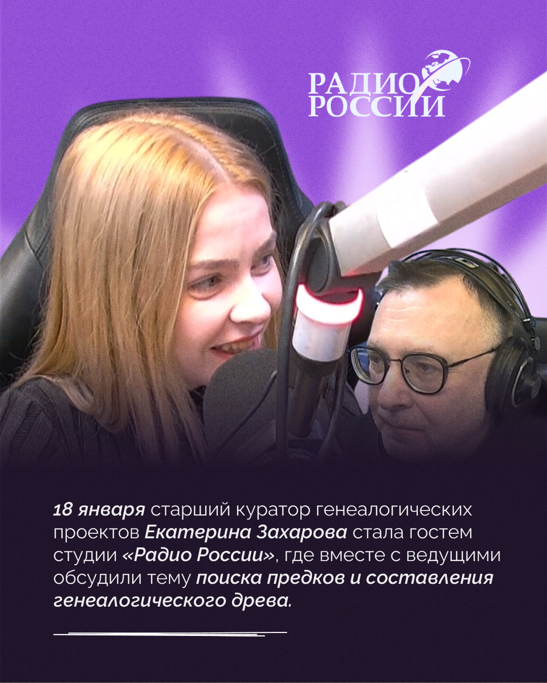 📌18 января старший куратор генеалогических проектов Екатерина Захарова стала гостем студии «Радио России», где вместе с ведущими обсудили тему поиска предков и составления генеалогического древа.