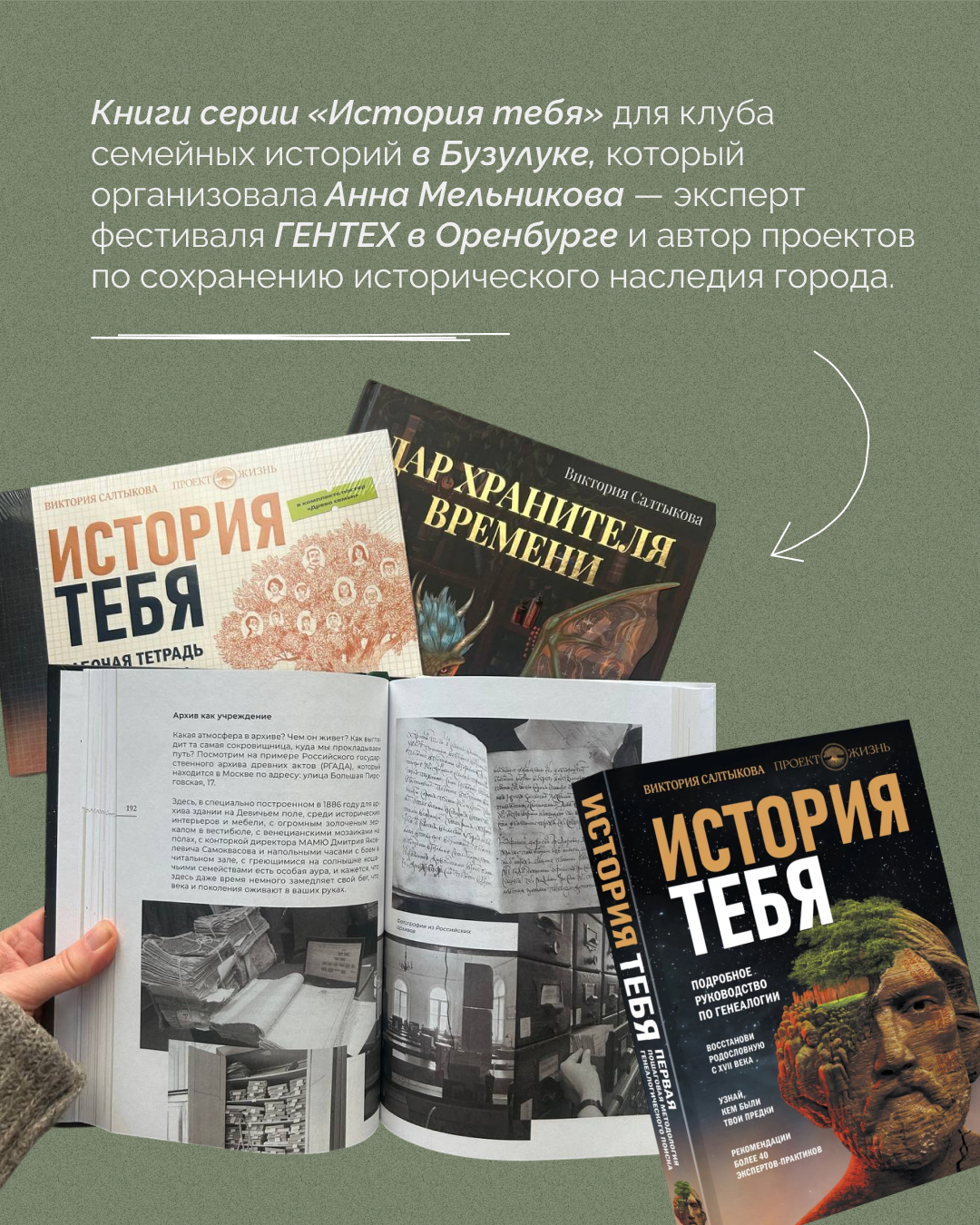 Мы подарили книги серии «История тебя» клубу семейных историй в Бузулуке, который организовала Анна Мельникова — эксперт фестиваля ГЕНТЕХ в Оренбурге и автор проектов по сохранению исторического наследия города.